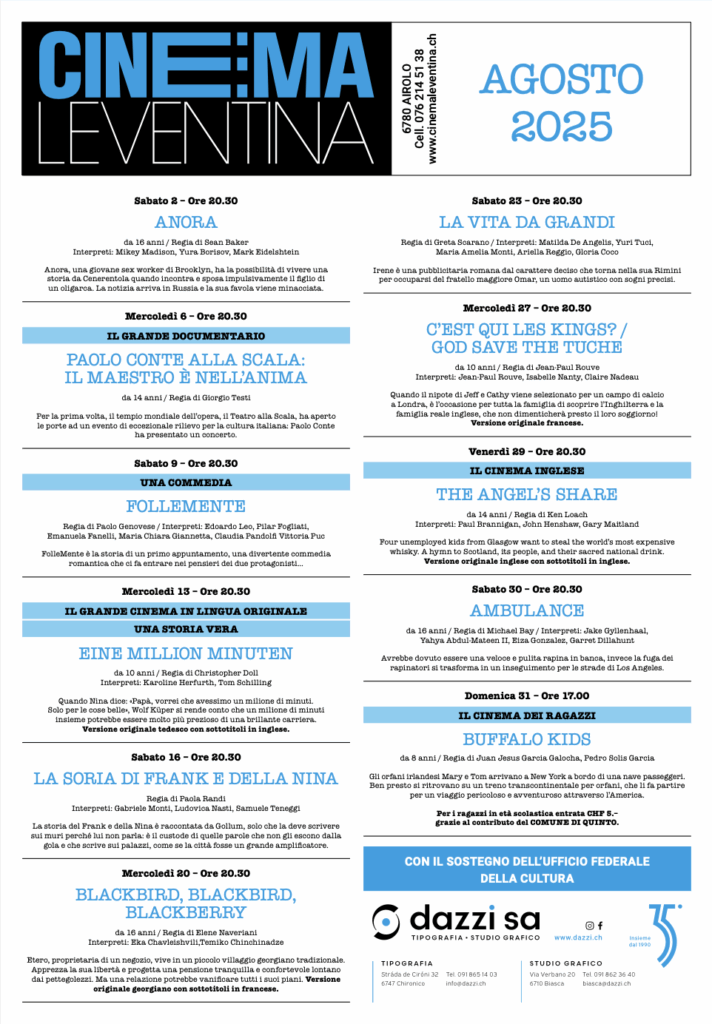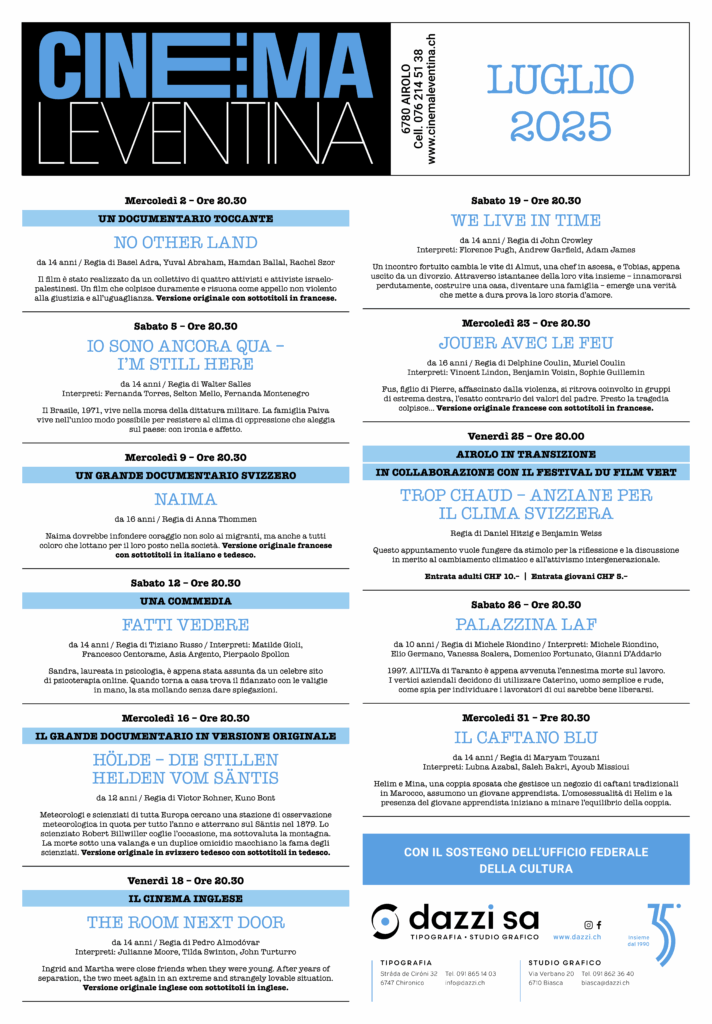 Il programma dettagliato sarà leggibile sulle consuete locandine mensili e sul sito www.cinemaleventina.ch